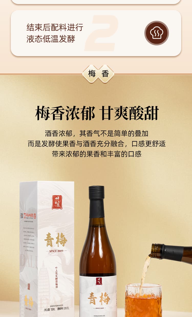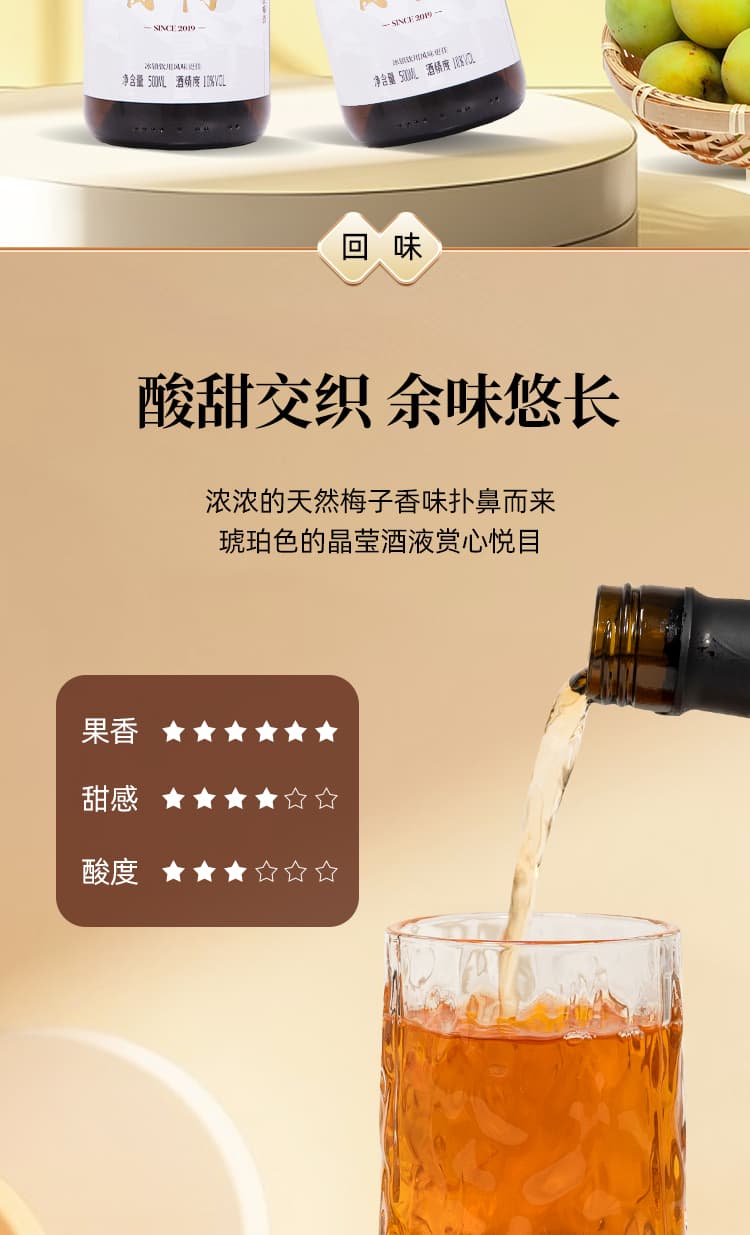 • 梅香与酒香充分融合:发酵型青梅酒的梅香浓郁,其香气不是简单地叠加,而是经过发酵使梅香与酒香充分融合,风味口感更加舒适自然。
