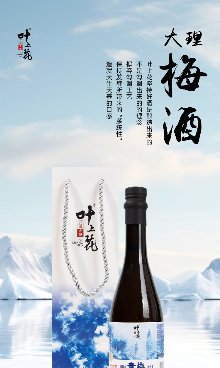 大理叶上花梅酒产自云南大理洱源县,中国最知名的青梅产地,这里海拔高(平均海拔2060米),气候适宜,生态好,本青梅酒均采用本地优质青梅作为发酵原料。