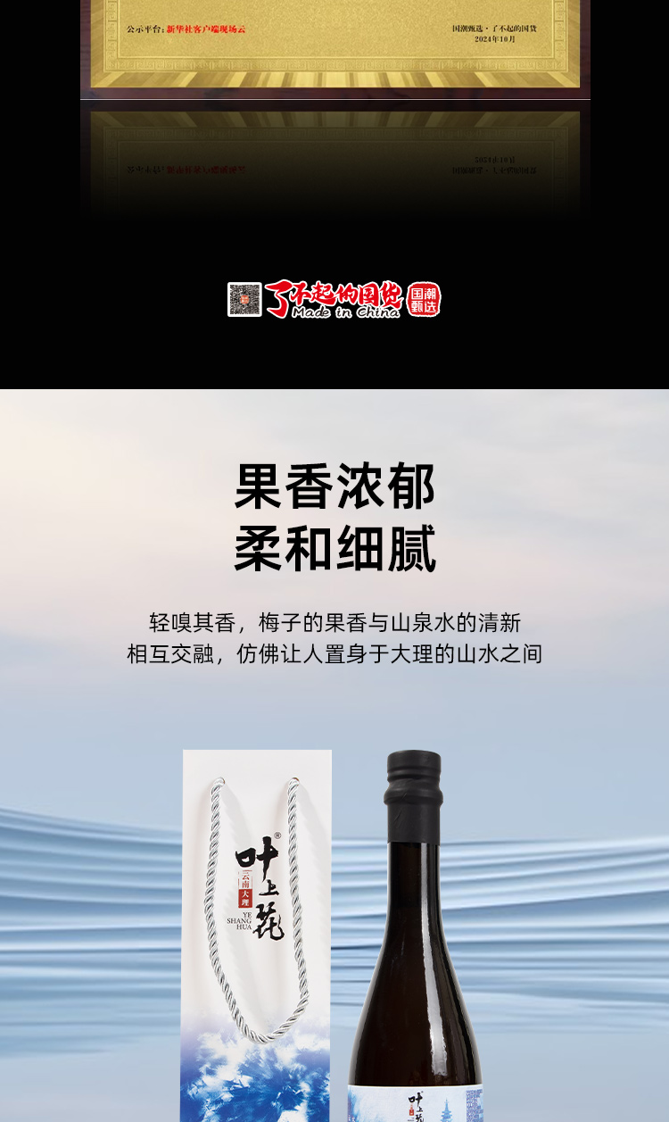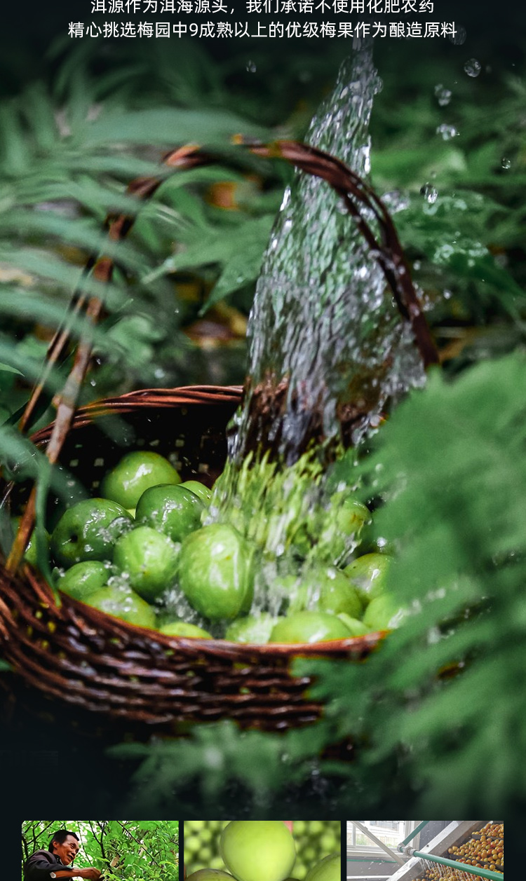 •梅酒所用之水,为大理苍山山脉洱海源头自然山泉,水质富含多种矿物质,直饮干净清甜。