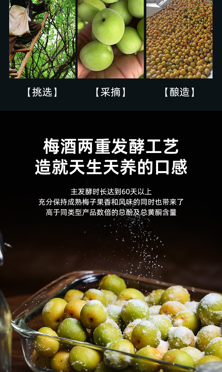 • 梅香与酒香充分融合:发酵型青梅酒的梅香浓郁,其香气不是简单地叠加,而是经过发酵使梅香与酒香充分融合,风味口感更加舒适自然。